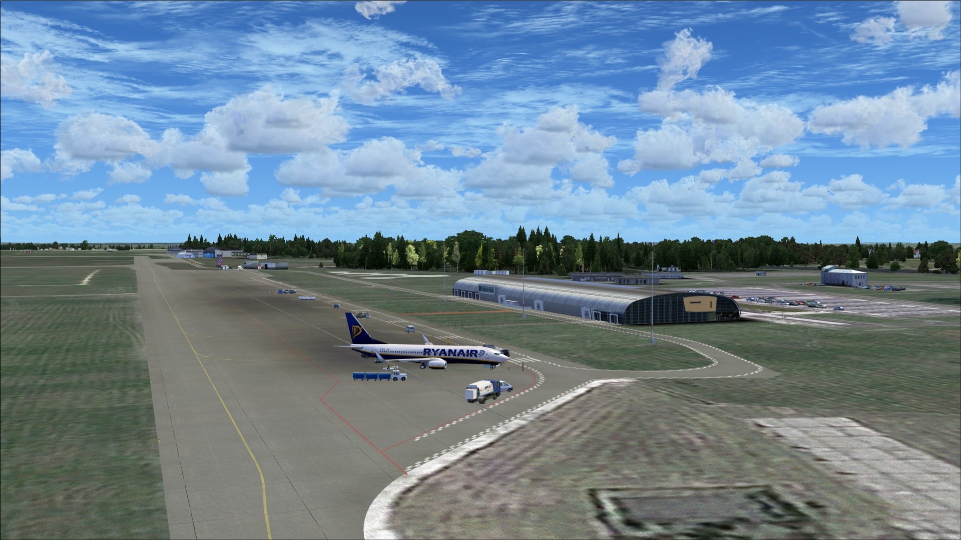 Modlin Airport which is one of two major airports serving the city of Warsaw is used by low cost carriers. In their re-creation they’ve included the airport’s buildings including the main terminal along with the old hangars that are located down near the end of runway 26.