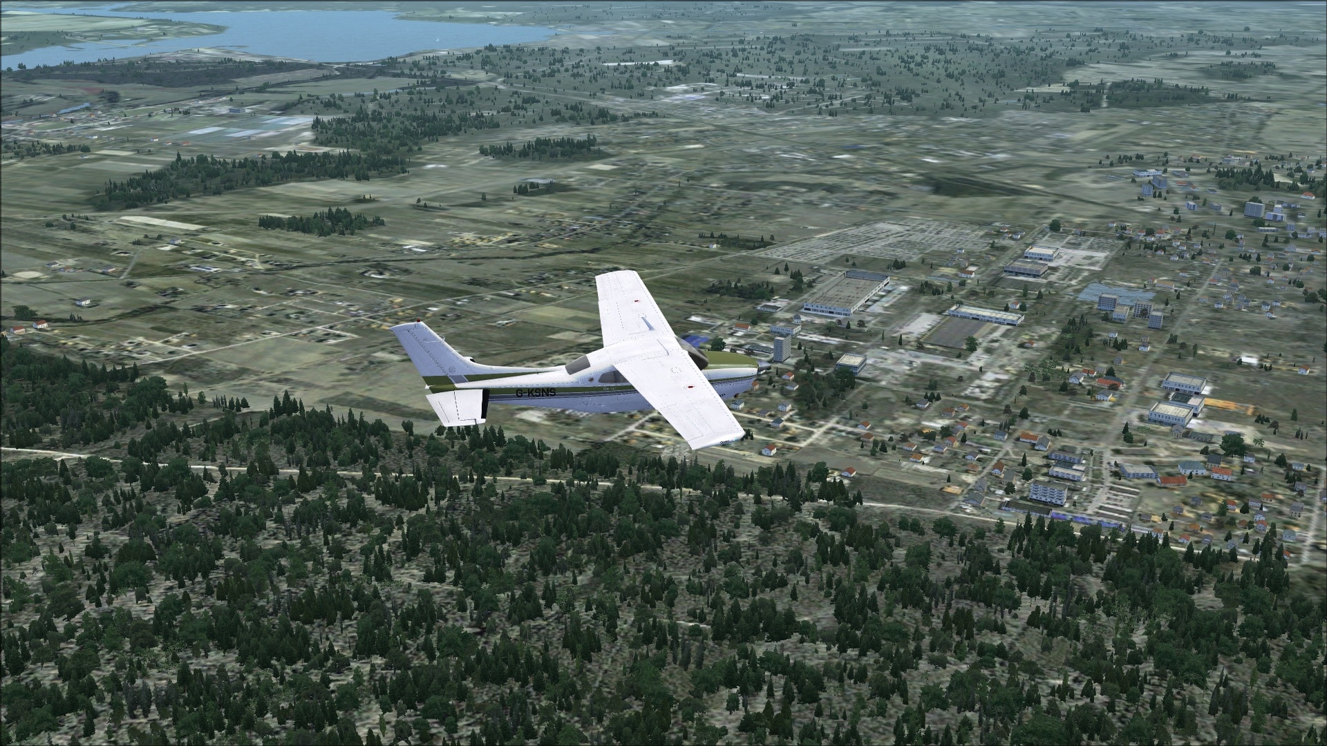 For the base they use photo textures so we get a detailed representation of the area and we can see all of the various geographic features. The use of photo textures also ensures that they have an accurate base whereby they can overlay the myriad of different objects and structures that are found throughout. The quality of these textures is such that at altitudes below approximately 1500ft there is some blurriness, which is a very common downside with photo textures, but as you get to higher altitudes the problem becomes less obvious.