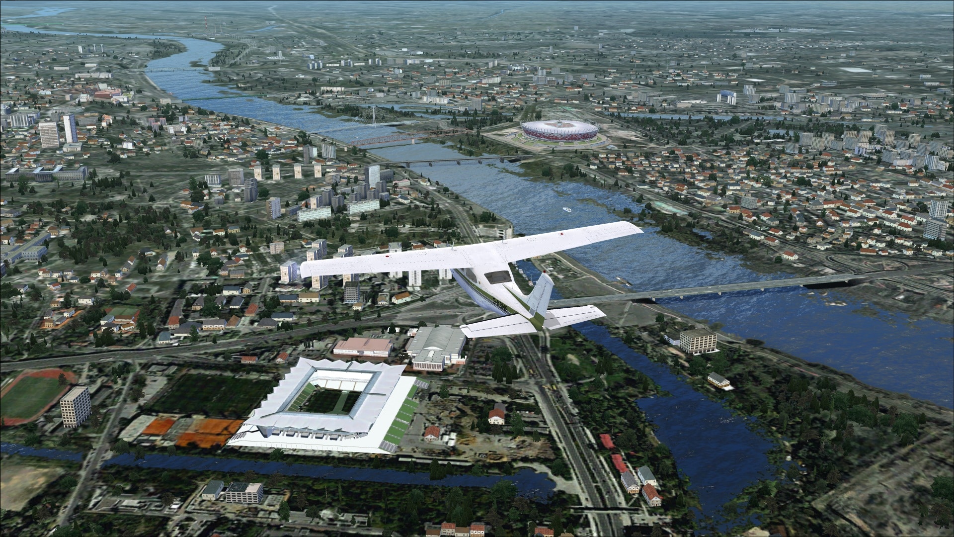 “Our product, Warsaw City 2013, gives you a possibility to fly over an extremely large area of Warsaw city. We have included a full-season/night high quality photoreal ground textures of about 5000 square kilometers. The city centre has hundreds of custom buildings modelled, there are all important landmarks on the whole included area too. We have also created 14 variously detailed airports and heliports for the project:”
