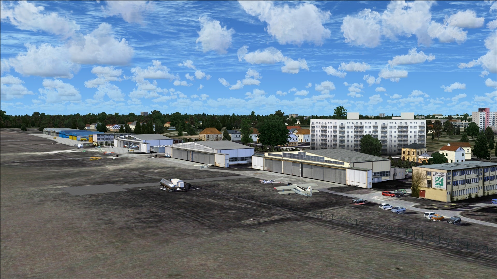 Another visual gem I came across was Babice Airport which was actually my favorite airstrip. Primarily used by private pilots I felt that it had the most ambiance with lots to see. The location was also great being right next to the main central area of the city. The airport has a concrete runway and grass strip along with several helipads. The buildings are old and like those at Modlin show signs of aging and neglect; this is thanks again to the high quality imagery used. Another visual feature was their inclusion of static aircraft parked in various spots around the airport. There were different types of GA aircraft, gliders and several helicopters.