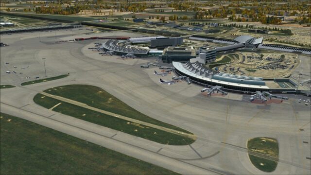 The actual product screenshots are looking pretty good, with a nice photoreal terrain, numerous details up to ground services vehicles, all night effects and of course an accurate modelling of terminal with its singular roof shape and more buildings in other areas as well.