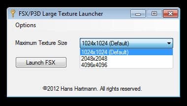 The third utility, FSX P3D Large Texture Launcher or LTL.exe, lets you set the TEXTURE_MAX_LOAD parameter in the “fsx.cfg” file to one of the three values, 1024, 2048 or 4096. It saves you the effort of setting it manually.
