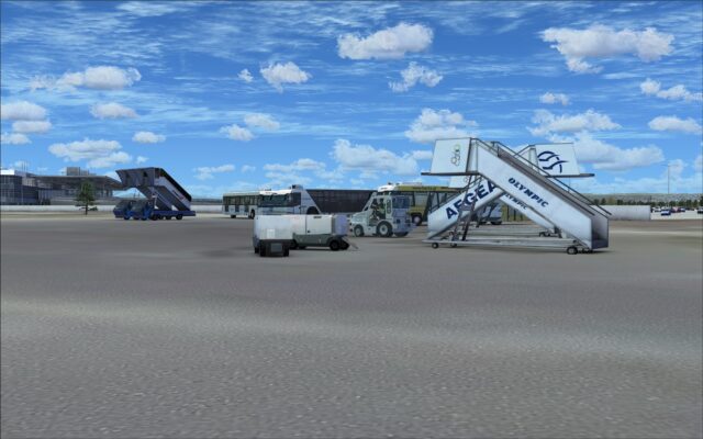 Of course a big part of making an airport look real depends on how well they populate it with everything needed to allow an airport to function on a daily basis. They’ve succeeded in doing just that, populating the entire airport with high quality objects and vehicles. It’s been done in such a way that we can become immersed in the environment and activities that take place. Realistic is the word that kept coming into my head over and over as I spent time at Thessaloniki airport. The other thing about their work is that many details are subtle. As an example they include small details such as tires and rims up against a wall, or boxes near a doorway. It’s often these little touches, the nuances that make the difference.