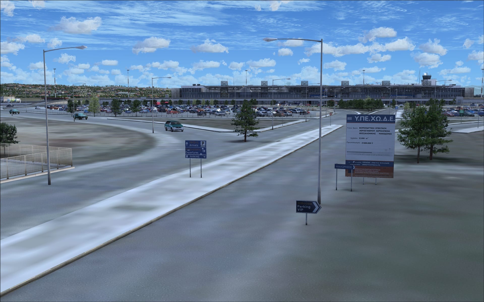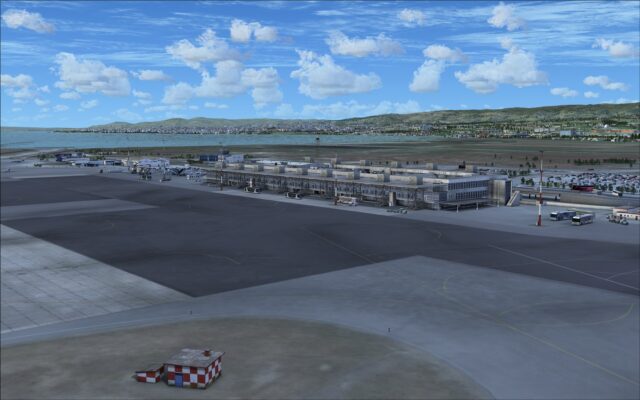 Thessaloniki International Airport, ICAO: LGTS, which is officially known as Macedonia International Airport is located about 15 km SE of the city center of Thessaloniki, Greece. The airport originally opened in 1930 has grown over the years to become the second largest state owned and operated airport in the country after Heraklion airport. In 2012 over 4 million passengers passed through its facilities. The airport is currently in the process of extending runway 10/28 and the scenery depicts the airport in the early stages of this construction.