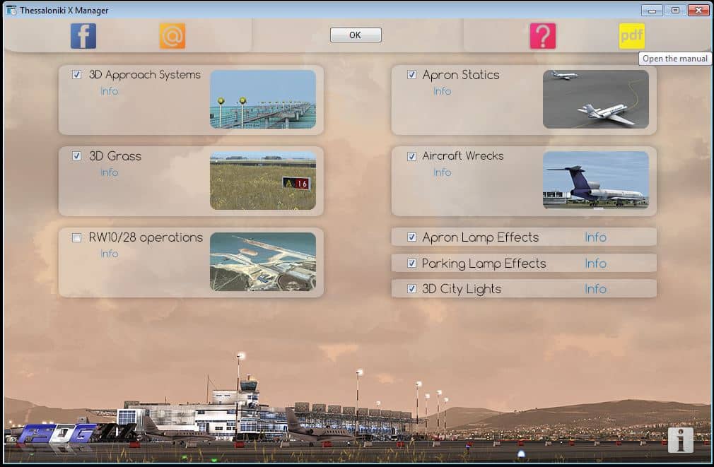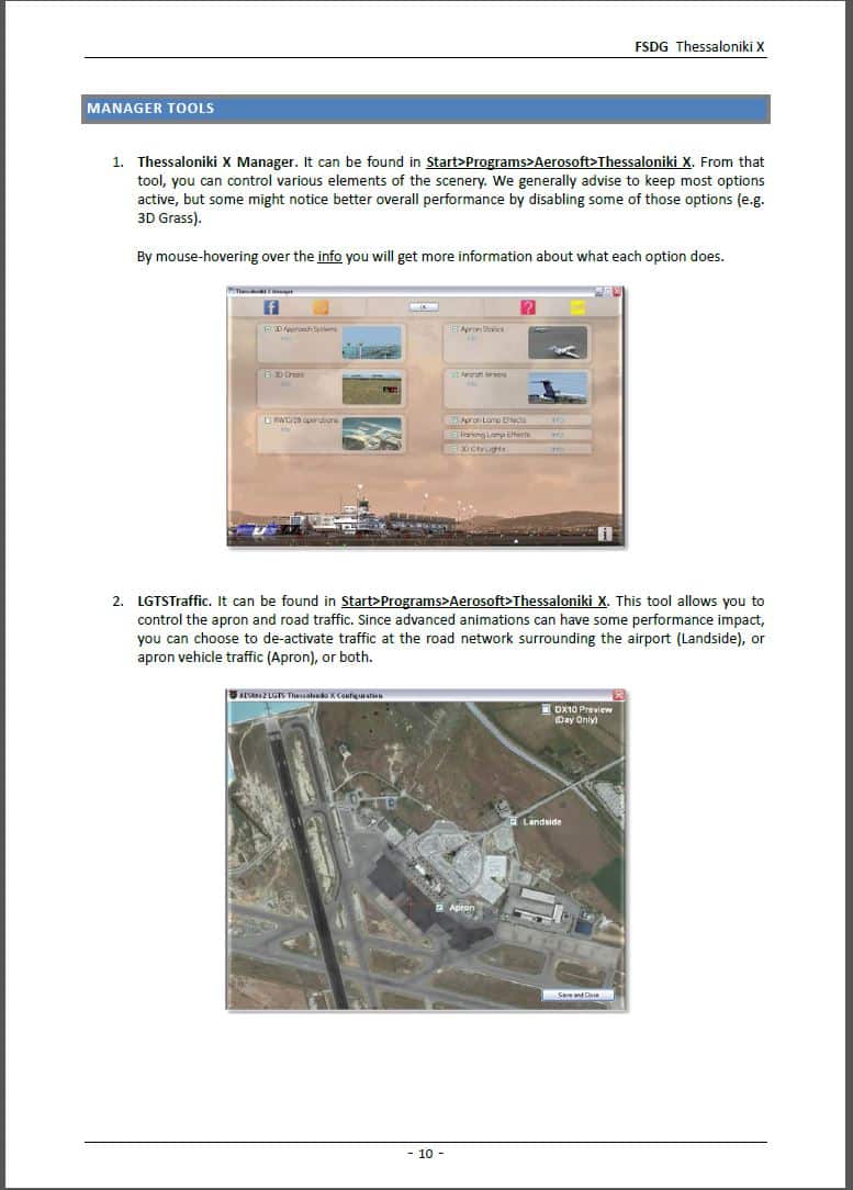This product includes three configuration utilities; Thessaloniki X Manager, AESLite2 LGTS Thessaloniki X Configuration and LTL.exe. The first two allow you some control over the scenery’s visual features which is good to have with a product as complex as this one. As an example, one of the options you are given is to enable or disable the use of runway 10/28. The manual does explain the options available even though they are basically self-explanatory.