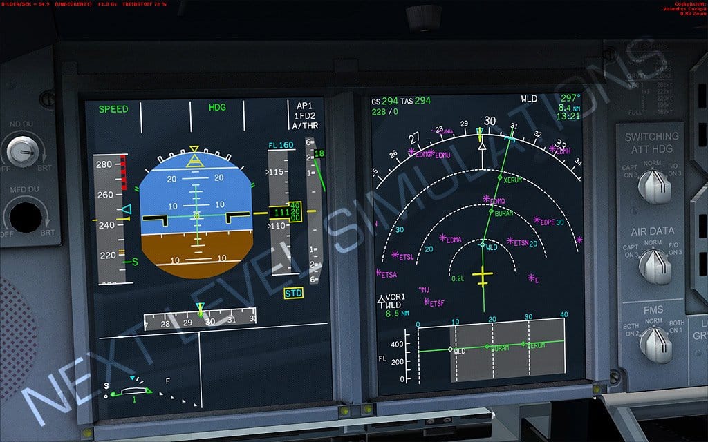 The last shot they uploaded shows the Navigation Display with the vertical profile being worked on.