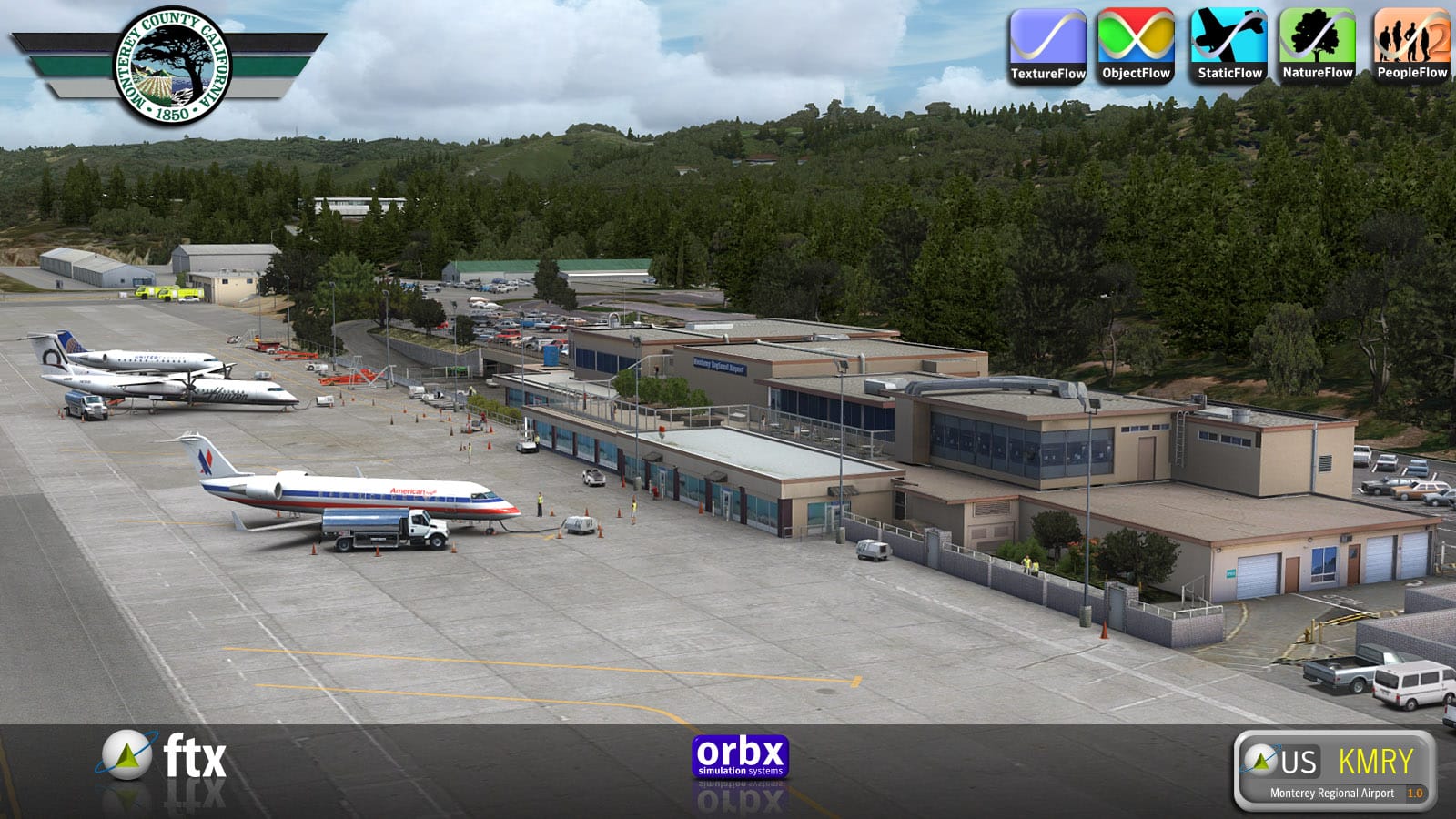 Jarrad Marshall’s second visit to Northern California for Orbx‘s Full Terrain scenery, Monterey (KMRY), is now available, featuring both the airport itself and a large photoreal