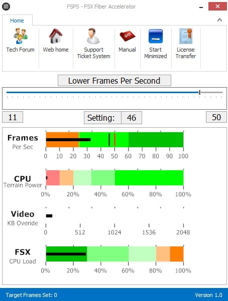 For those of you who haven’t got it yet, FSX Fiber Accelerator aims at faster textures loading time, and better framerates in FSX, by tweaking the simulator config file (fsx.cfg). It works live and adapts automatically according to the target you set, the scenery/aircraft you’re using, and your hardware specs.