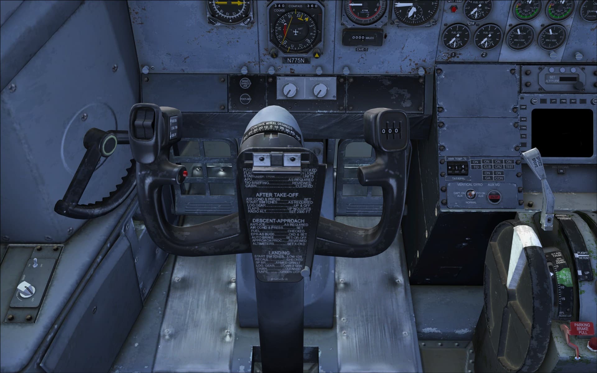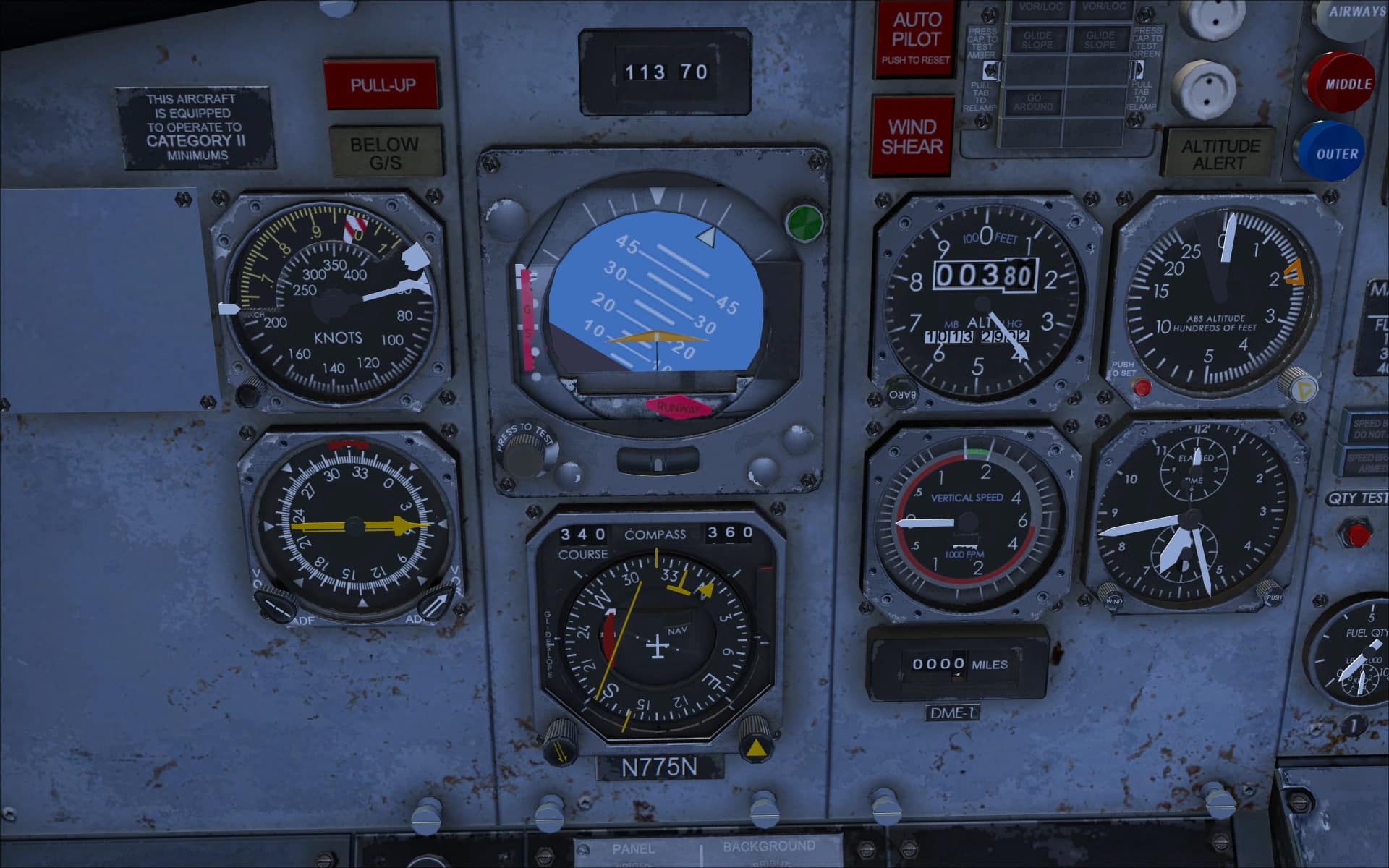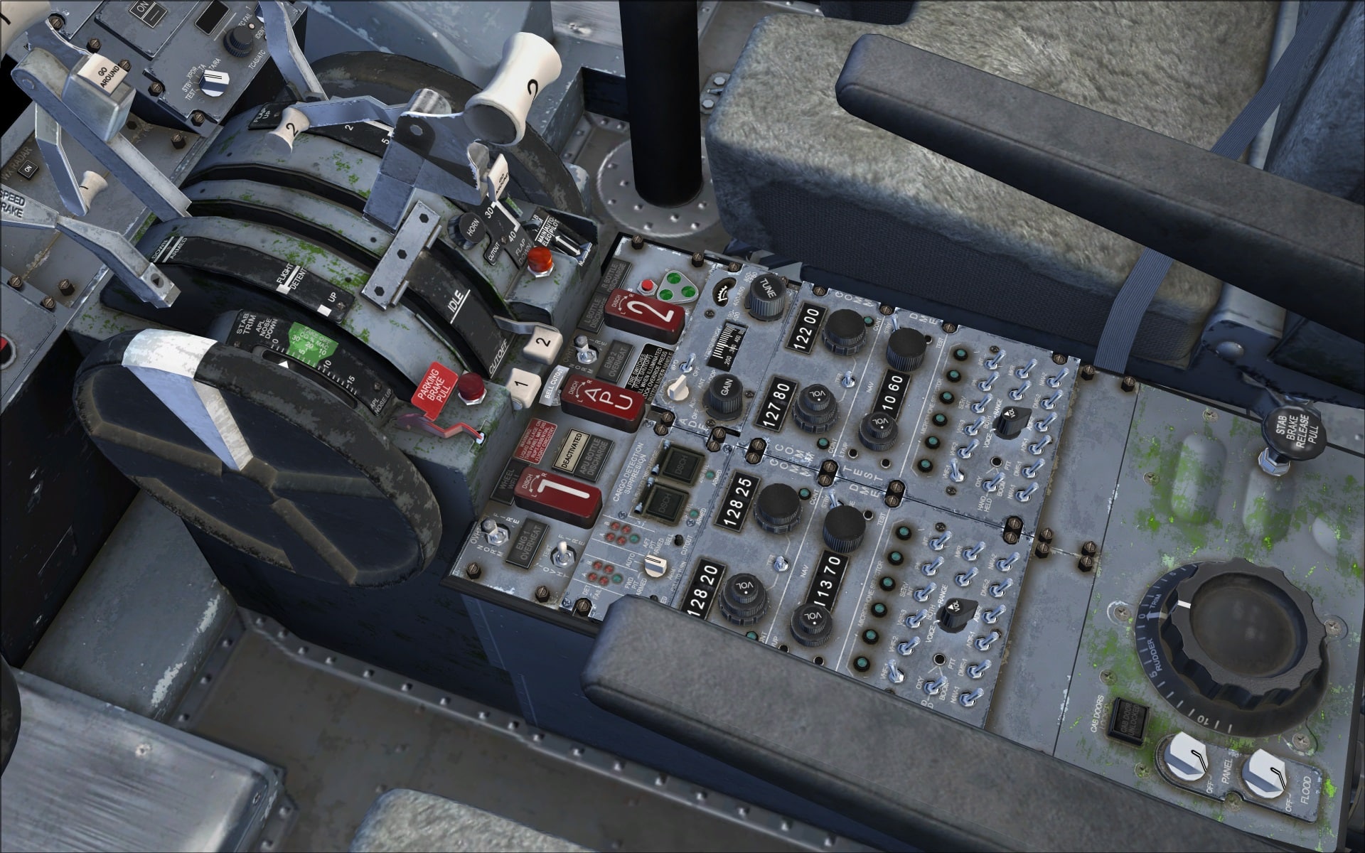 You could never accuse Milviz of creating a clean and sterile looking cockpit. This one definitely shows signs of wear and tear and the many hours of flying time that these cockpits would have endured. Chipped, worn paint and dirty surfaces are everywhere. Makes you think that none of these airlines had any money in their budgets to clean or perform any sort of housekeeping.