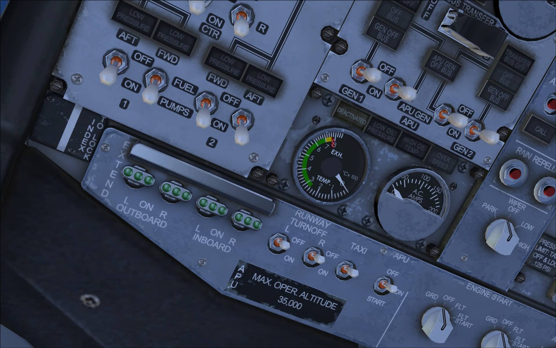 Jet liners are complicated beasts that employ a host of diverse systems that control and/or monitor such things as flight controls, landing gear, electrical, hydraulics, avionics, fuel, power plants, navigation, communication and more and the Boeing 737-200c appears to have all of them. In creating a product such as this every developer must try and realistically mimic the characteristics of the aircraft, and also wrestle with the question of just how complex they want to make their aircraft, and in doing so how to implement the functionality of all of these various systems. Milviz, in my opinion, have found a good balance of complexity and functionality to satisfy a very wide spectrum of users. I can’t comment on how well such things as fuel flow rates or hydraulic pressures are reproduced I just know that they all appear to function as they should.