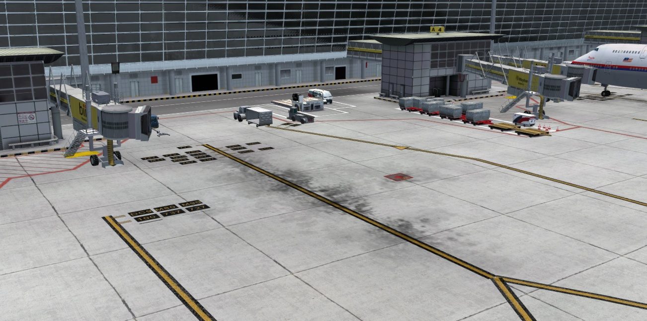 The airplane parking spots and taxiways received effects of wear and tear, or other oil stains. It seems like we’ll get also some surprises out of the airport like custom buildings including the Masjid Sultan Abdul Samad mosque. An FS2004 version should come after the initial FSX product.