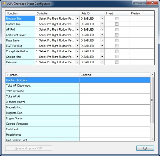 A final “2d window” that comes with the Accu-Sim Cherokee, but which isn’t actually inside the sim, is the Input Configurator, which can be accessed via the Start menu as mentioned earlier.