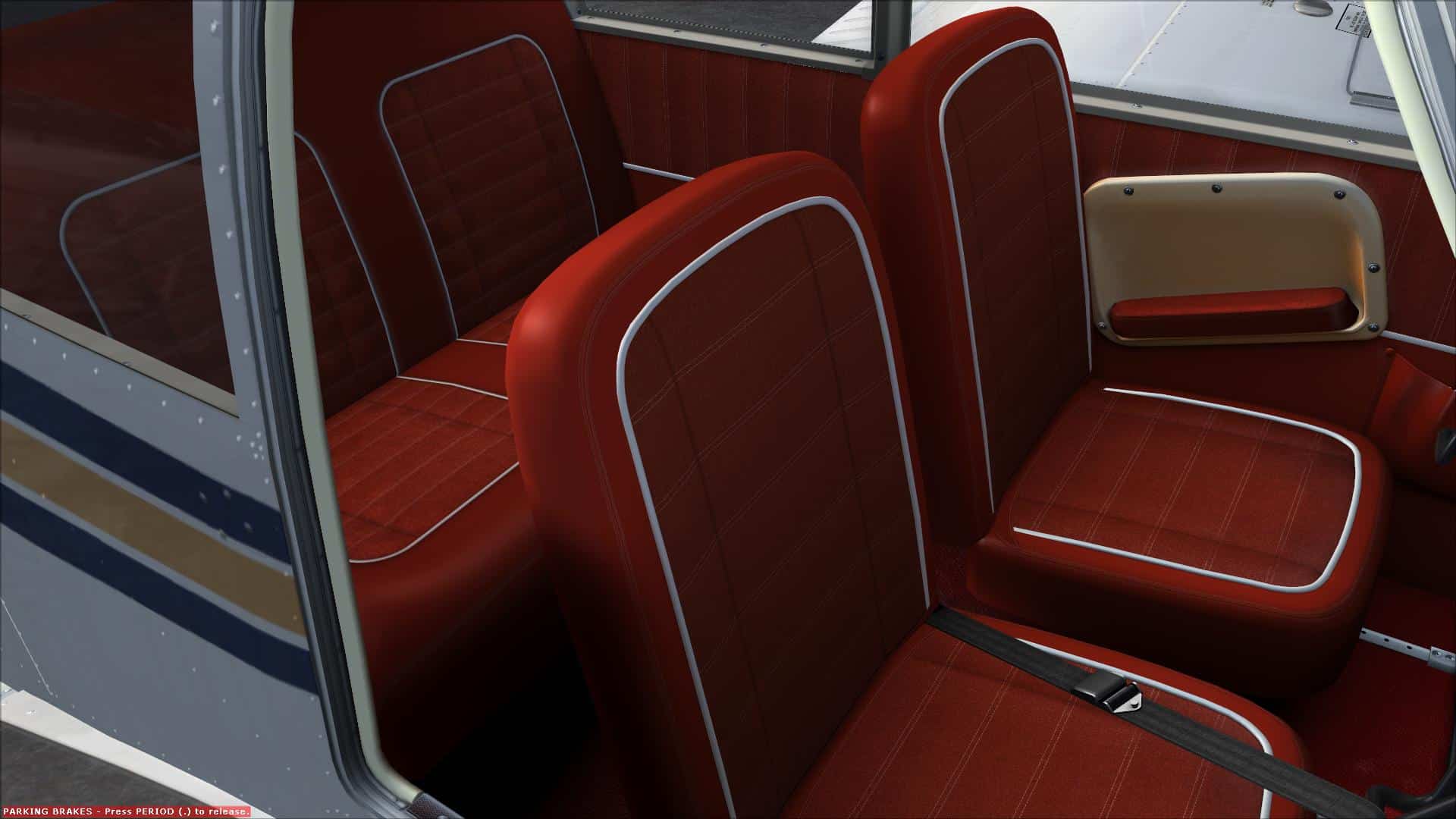 As you will expect from an A2A package, the four seat interior is really well presented, modelled and textured. Little touches such as the PA-28 standard control lock (yes, you really do tie up the yoke with a seatbelt in the real aircraft) are present or accounted for. I’ve yet to find something that cannot be prodded or poked and actually expected to do something plus, in this one, you can even pull the circuit breakers to disable or enable systems. They don’t pop of their own volition, either randomly or because of a detected fault, right now, but that is something the team are working on.