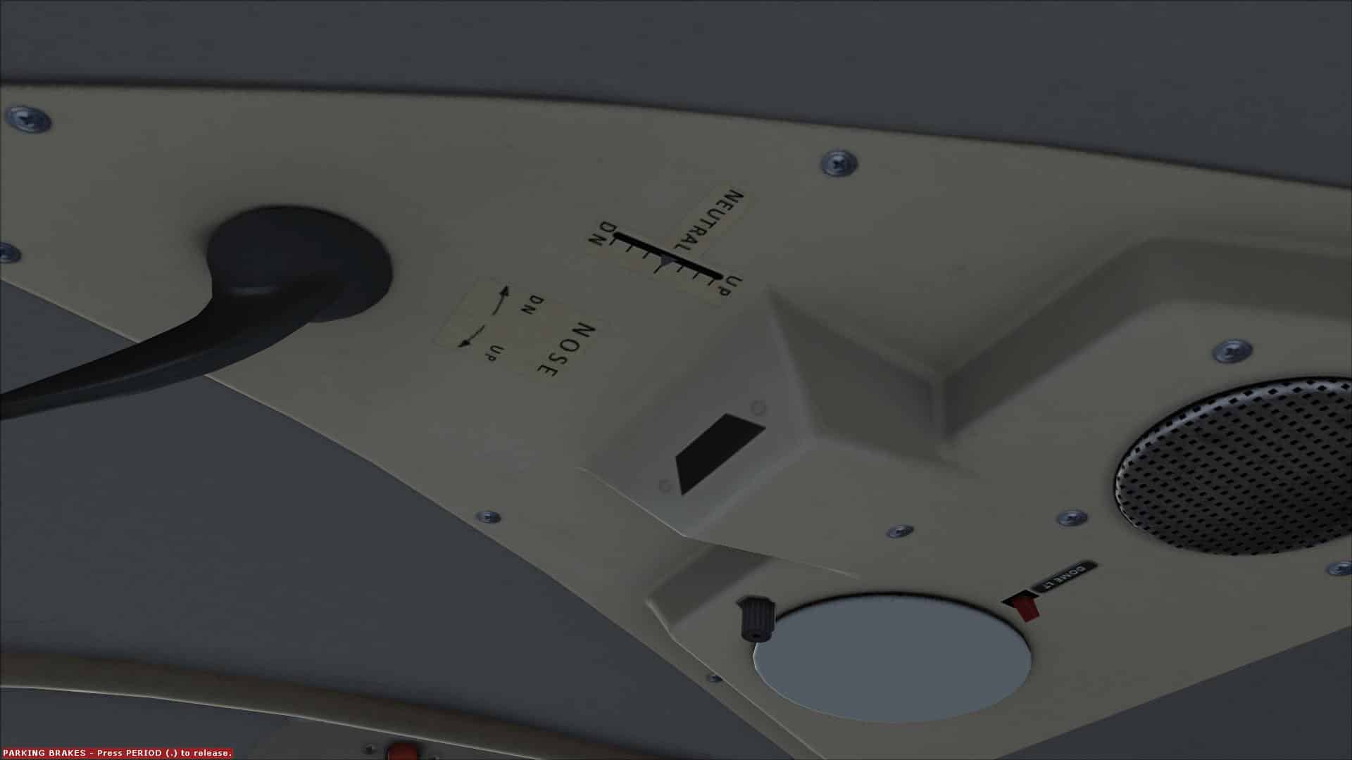 Another feature which people seem to love or hate – I’m not that fond of it – is that rather than the ‘caps’ used to cover where the yoke shafts would be when hidden in other models, A2A have chosen this time to include a cut-off partial shaft instead. For once, in this aircraft, the yokes are important, because there are controls on there that you need to operate the autopilot and they’re also required to be visible in order to apply the seatbelt “control lock”. If you have a yoke in front of you on your desk and a downright dangerous lump of metal pipe sticking out of the panel on your monitor, though, it doesn’t look right to me. Others’ opinions vary, but apparently the effect was intentional, to get you to only remove the visible yoke when necessary. I’m the opposite, I only make the yoke visible when necessary and I would have much preferred the old plastic caps. That’s personal preference and I couldn’t honestly mark them down for their decision.