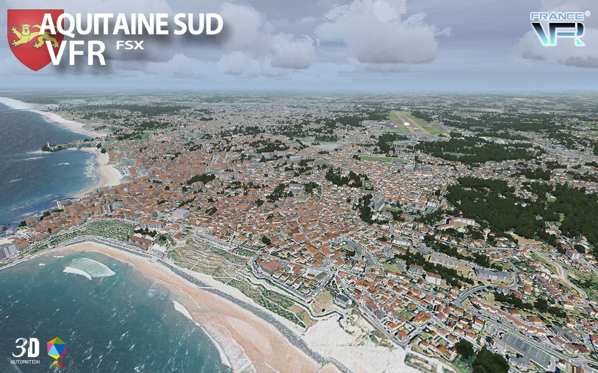 Aquitaine Sud VFR is the new FSX scenery of FranceVFR about to be released at simMarket where the Southern West region of France receives not only high definition photoreal textures, but also a very high number of custom Autogen buildings, houses, trees and other landmark objects.