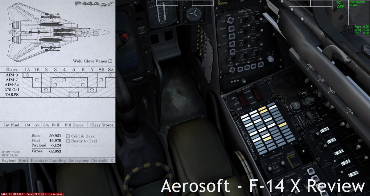 The Payload Manager gives you real time loading of weapons and fuel, with live mass readouts. It’s here that some differences between the different block versions of the F-14A come to light: the earlier versions can’t handle all the load-outs the later versions can.