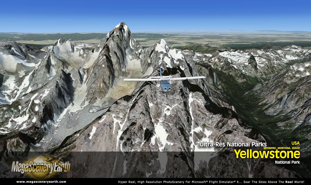MegaScenery Earth - Ultra-res National Park Yellowstone28Gb is the file size necessary to download before you can fly over the US National Park of Yellowstone.