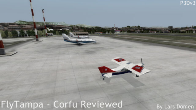 FlyTampa’s Corfu is available from SimMarket for €24.00 (excluding VAT). While not cheap for a scenery product, the price is not over-the-top either, in my opinion. Unfortunately, the product page isn’t really clear on what versions of what simulators the product is compatible with. The only 2 explicitly stated are FSX SP2 and P3Dv3. However, FlyTampa Corfu is compatible with all versions of FSX and all versions of Prepar3D. It does not work in FS9. Note that I’m using Prepar3D v3.1 for most of the testing concerning this review, although I’ve also done some flights from Corfu in FSX Acceleration.