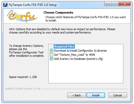 After selecting a simulator, you can choose some options, like whether to install the FlyTampa libraries, adding the scenery to the simulator.cfg file, and setting the “texture_max_load” value. After this, it’s just waiting for the installer to finish. When installed, the scenery takes up about 1.13GB of disk space. Apart from the scenery itself, you get short manual and the FlyTampa Configurator. More on that later.