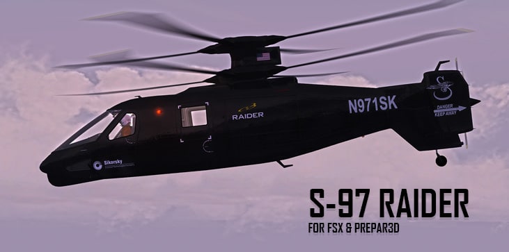Hangar18 Simulations - S-97 Raider FSX P3DThe S-97 Raider is a fast helicopter manufactured by Sikorsky that you can now fly in FSX or P3D.