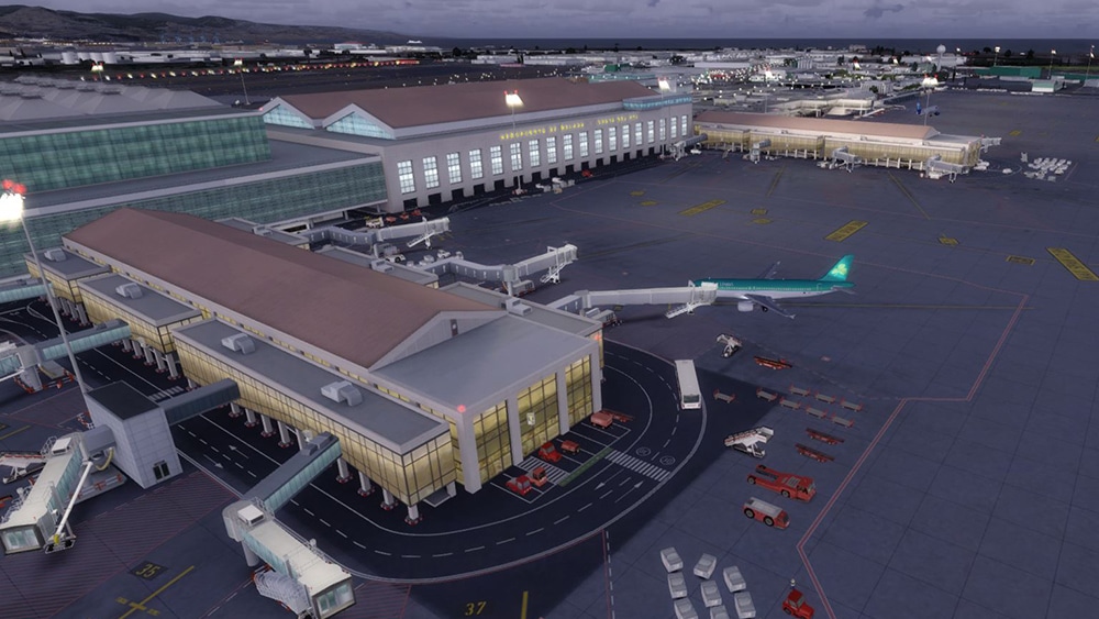 The scenery is not limited to the airport LEMG only, the city received also Autogen and 3D objects over the photoreal terrain. About the airport details, you can choose either animated jetways (with CTRL+J combination) or with SODE.