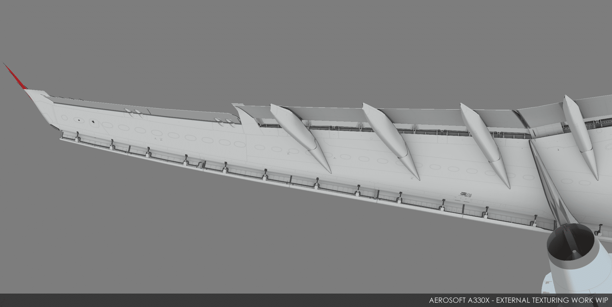 The textures work is also going its way, and the latest pics show the long haul airliner wings in the same thread at Aerosoft previews forum.