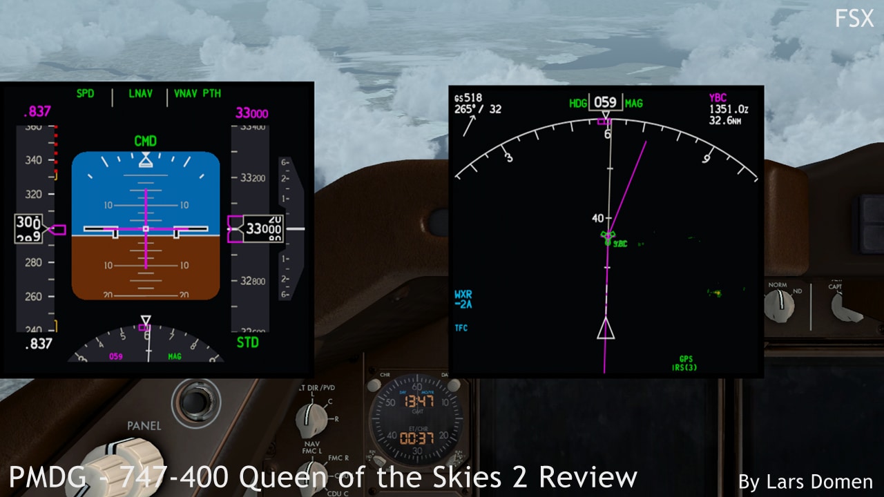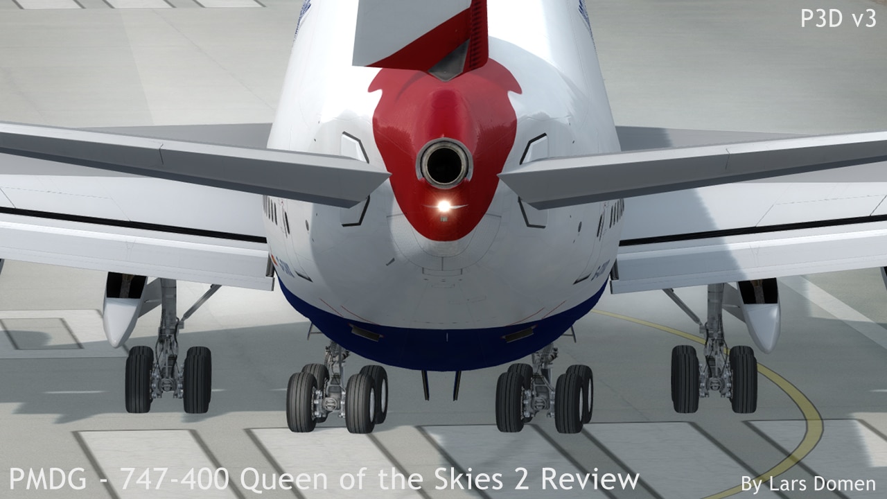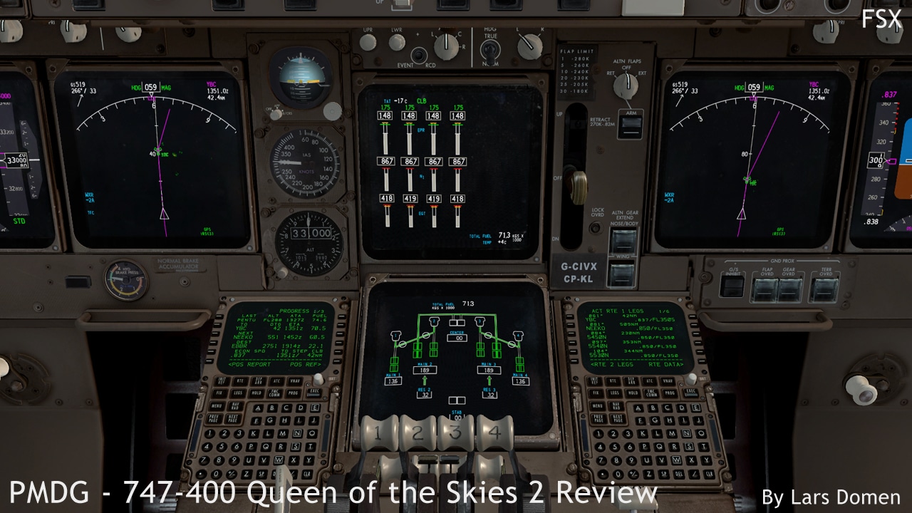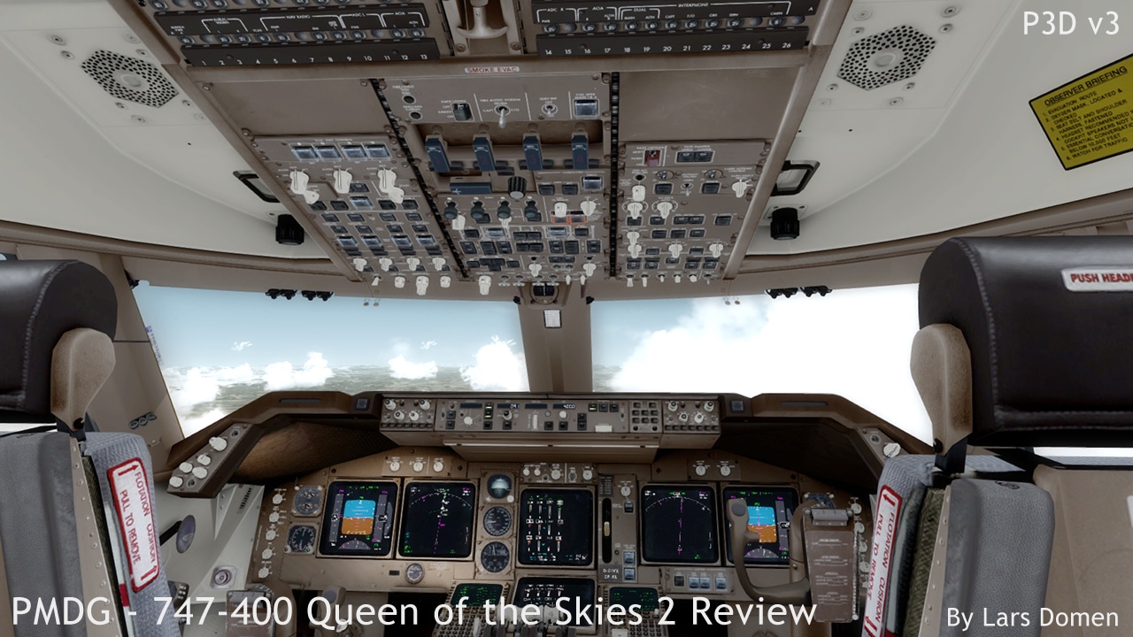 I will certainly keep an eye on this aspect of the 747v3, and do more comparison. But for now, I can say I was impressed from the very first moment with the smoothness of the simulation. Framerates on my system appear very good (as in, better than many other high-detail simulations). I’ve not gone through the steps to quantify VAS (memory) usage yet, but in several flights, both long and short, both FSX and P3D, the QotSII has not given me an out-of-memory error yet. Telling in this regards is that the PMDG forum was not inundated with performance and memory topics the first days after release. To me, this seems to indicated PMDG got it very right.