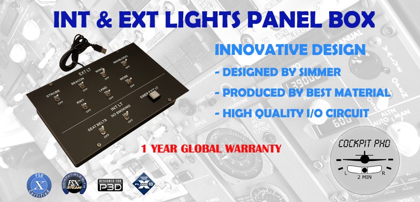 New entry to the hardware catalogue of CockpitPHD, the Lights Box allows the simmer to control exterior and interior lights in your simulator with actual switches.