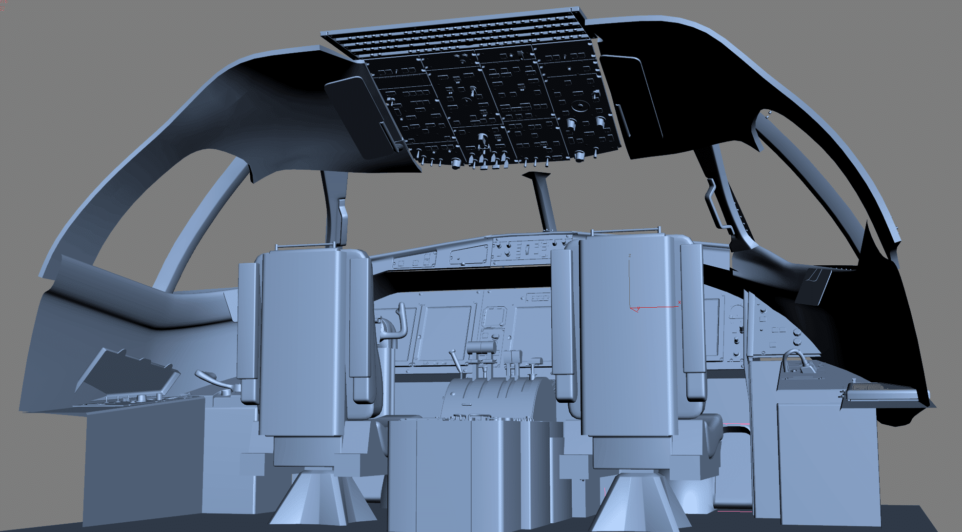 The overhead, pedestal and pilots seast have been integrated since the last screenshot.
