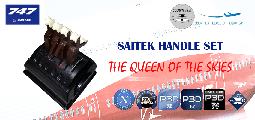 After the A320 and the B737, Cockpit PHD adds another set of handles for your Saitek throttle quadrant : the Boeing 747 !