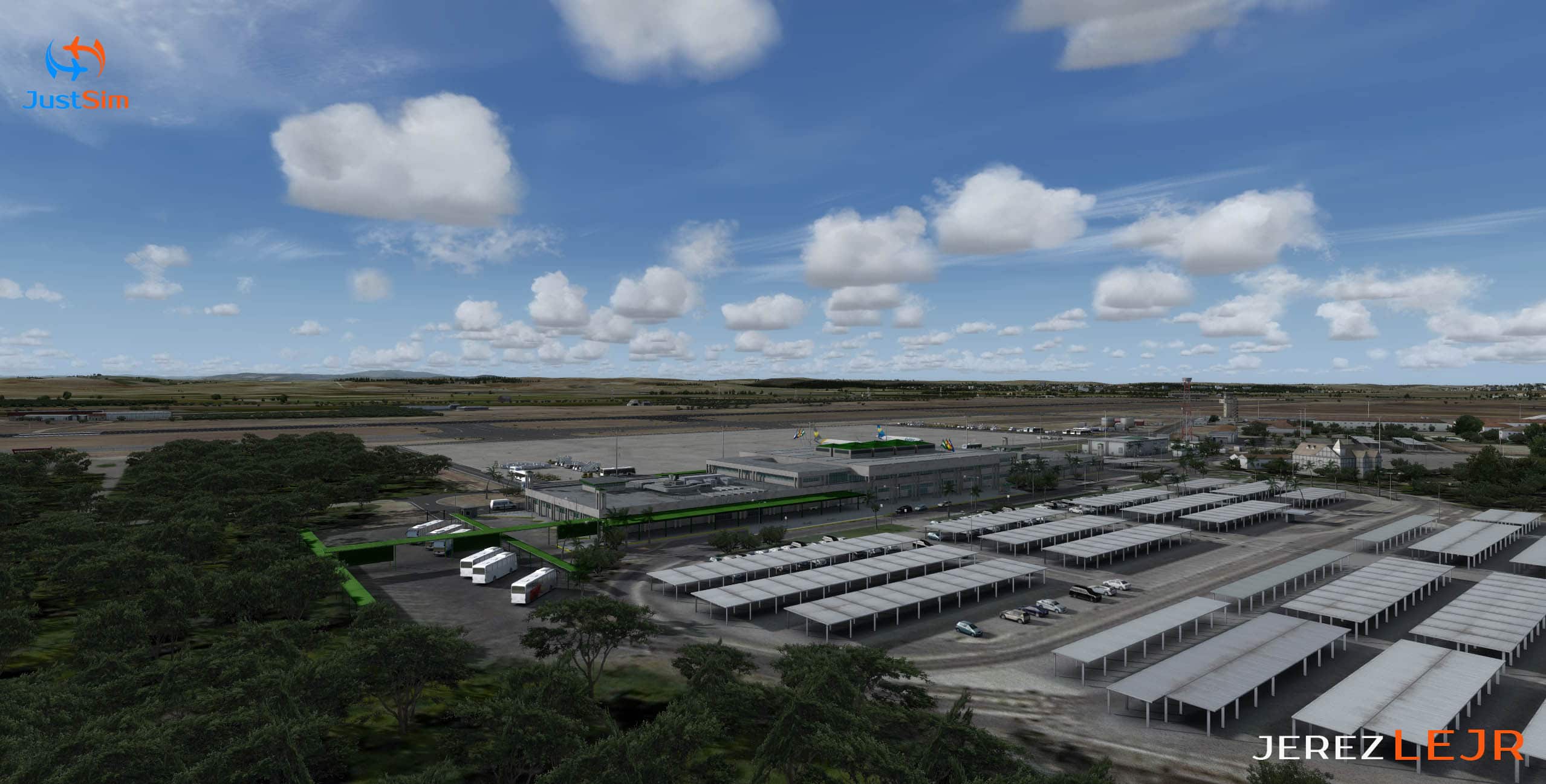 At Jerez LEJR, the little airport found between Cadix and Sevilla is completely modelled with HD custom textures, surroundings with Autogen.
