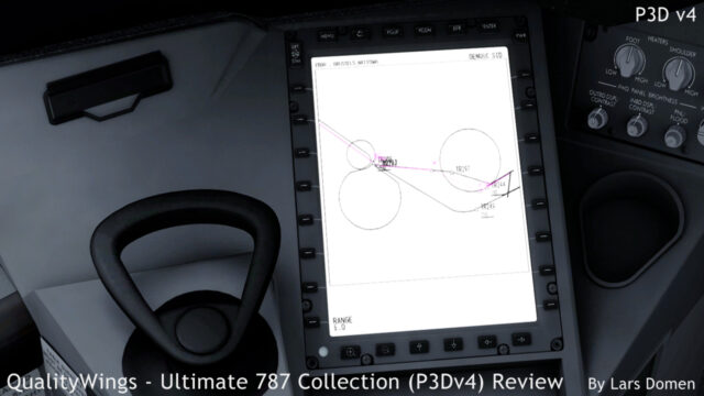 When looking at how the aircraft is simulated, we notice a large amount of functionality. The Boeing 787’s cockpit is basically built around 5 very large displays with a significant amount of interoperability. QualityWings does a commendable job is simulating this. There’s an enormous amount of different screen configurations you can choose from as a pilot. Captain and first officer side displays are all functional and independent. And while pilots in the real 787 use a ‘Cursor Control Device’ (think something like a touchpad on a laptop, but fancier) to interact with these large displays, in the QualityWings 787 you can just use your mouse cursor to click stuff.
