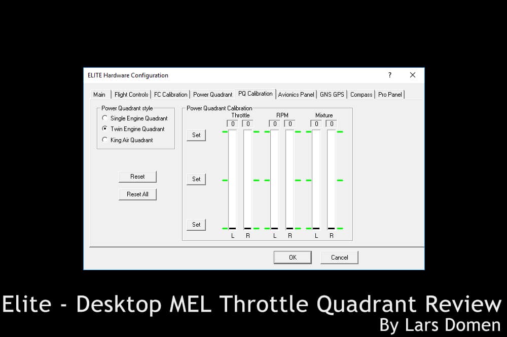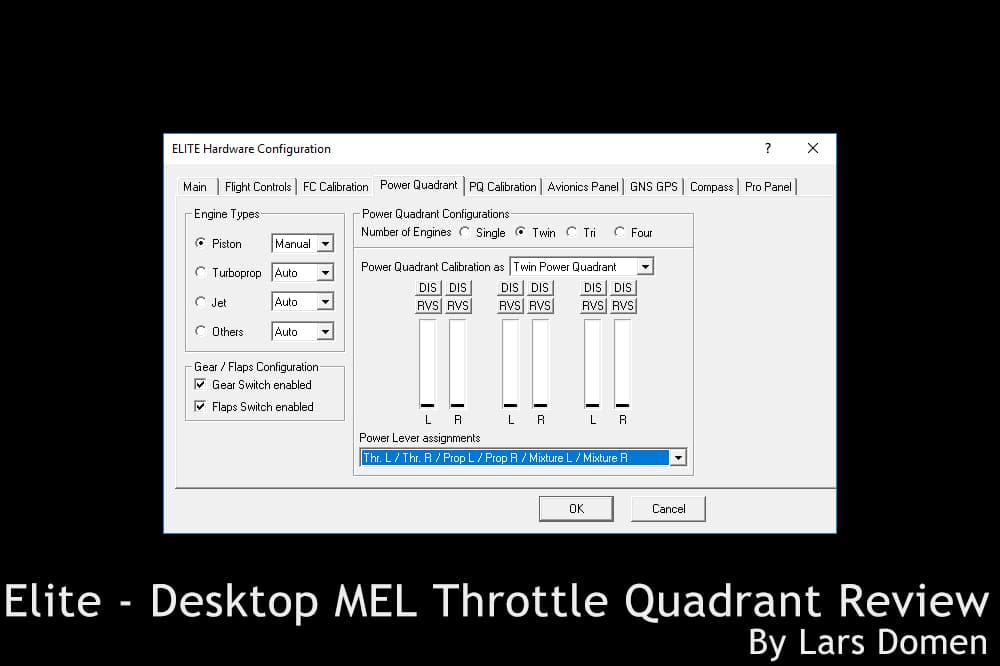 The operation of the plug-in wasn’t always intuitive or clear to me at first. And the manual isn’t that comprehensive. But with some reading and testing, it’s all quite easy to use after a while. The most important thing, if the software doesn’t automatically pick the right settings, is to choose which throttle quadrant you’re using (Elite has several models available), pick what type of engines your aircraft has, how many of them, and how you want the axis to behave.