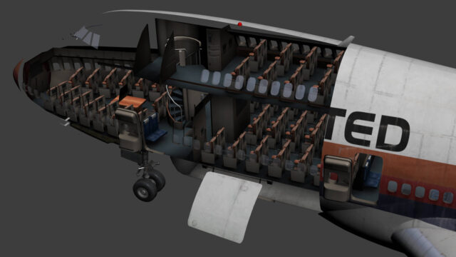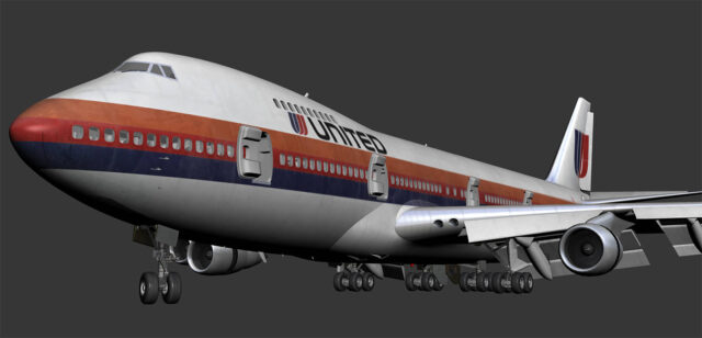 In July 2018, the 747 Classic model was still an early project with blank textures on the exterior body.