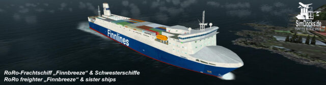 These are RoGo Freighters of the MSG-113 class used by both Finnlines and the DFDS shipping company. Further information can be found on the product page. Free registration is required to download the donationware packs, compatible with P3D v4-v1 and FSX.