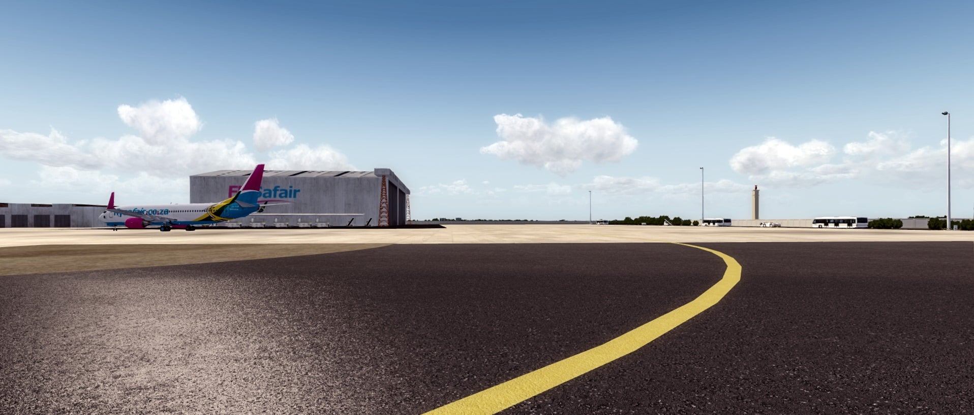 The development of OR Tambo International is going on, and it will include PBR ground textures and custom markings. Click on the link for more preview pics.