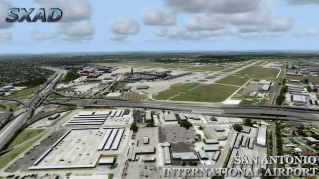 The entire airport and even surroundings of San Antonio International KSAT in Texas, USA, are now available for P3D V4-V2 and FSX at simMarket.