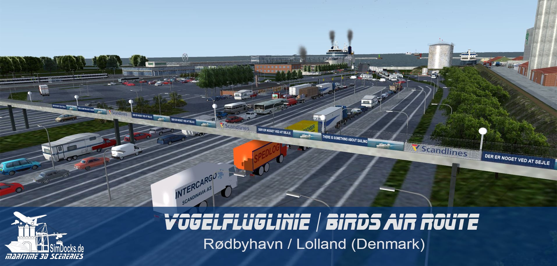 The addon actually consists of 3 sceneries (Puttgarden on the German island Fehmern, Rødbyhavn on the Danish island Lolland and the Danish airfield “Maribo”). Of course the ferry service between Puttgarden and Rødbyhavn with 4 ferry ships and 3 additional ships to Rødbyhavn is also included.