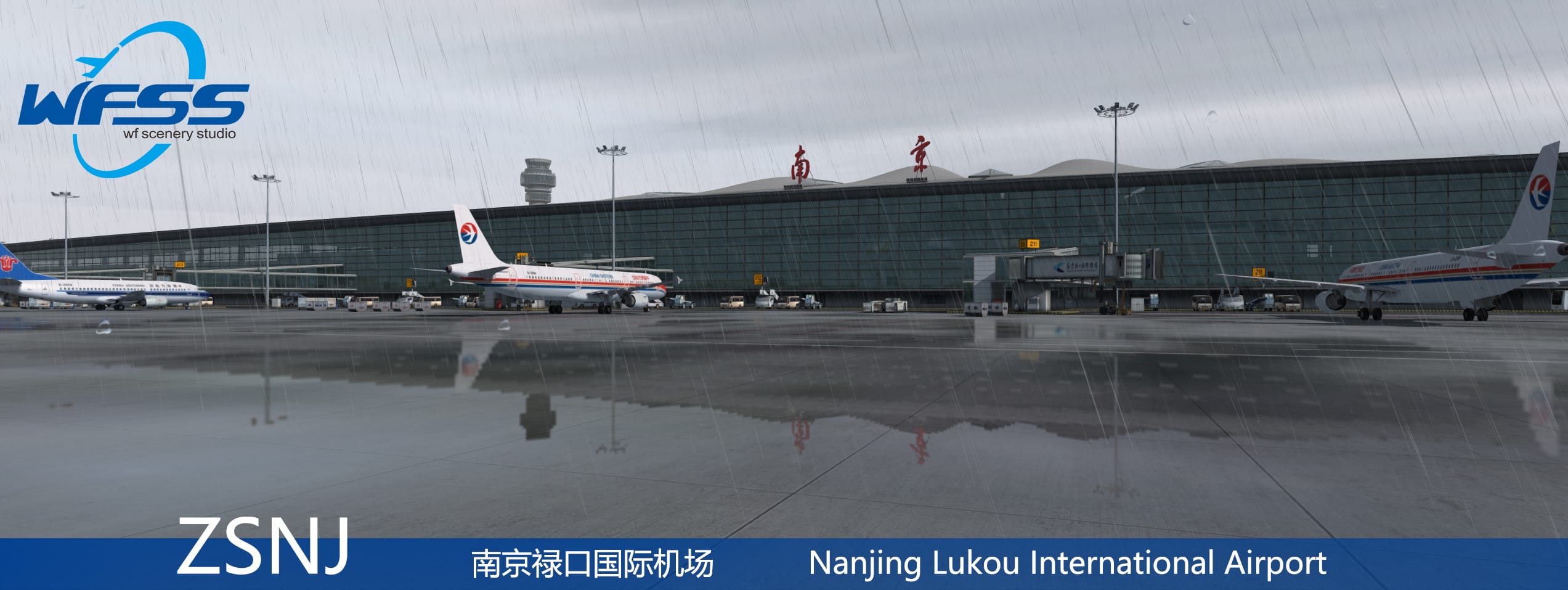 Nanjing Lukou Intl ZSNJ is a big airport with all modern visual effects and now common features in P3D4 advanced sceneries.