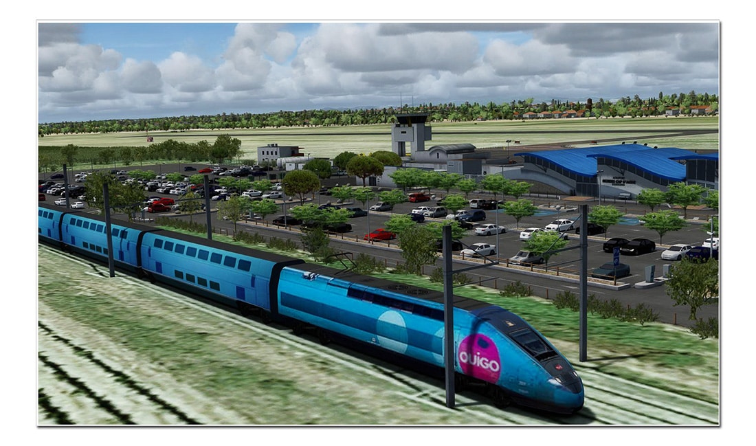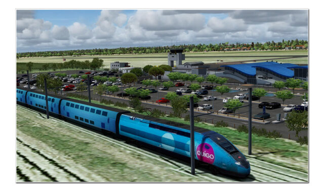 The first one Durban King Shaka (FALE) in South Africa, and the second one is Beziers (LFMU) in the South of France. Both look very realistic and uses PBR materials on the custom ground. And there’s even an animated high speed train TGV in the French scenery.