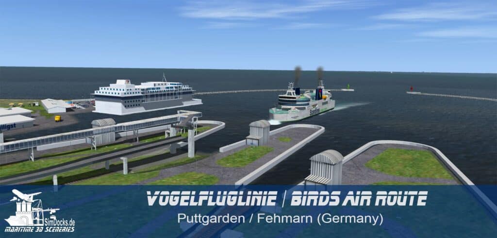 Recognize the actual buildings and enjoy the 3D people and cars populating the 3 following areas : Puttgarden, Rodbyhavn and the Maribo airfield (EKMB). This scenery also includes custom vegetation, AI ships and locomotives.