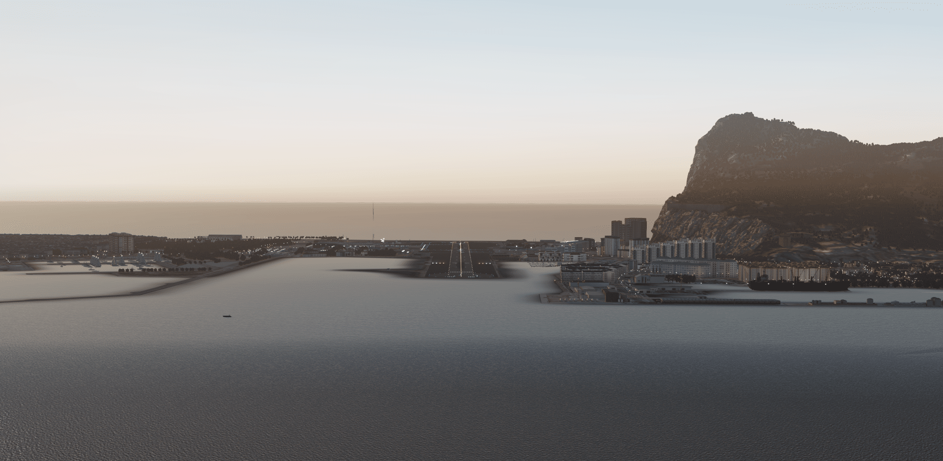 Gibraltar LXGB is a unique and extreme airport for various reasons : there’s a famous road crossing the runway, and the massive rock facing the airport and city is impressive.