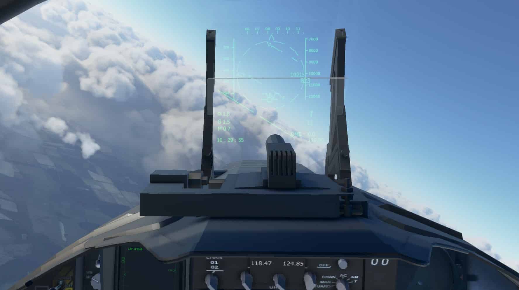 They found a way to crack the limitations of the simulator, that is not supporting HUDs or afterburners by default.