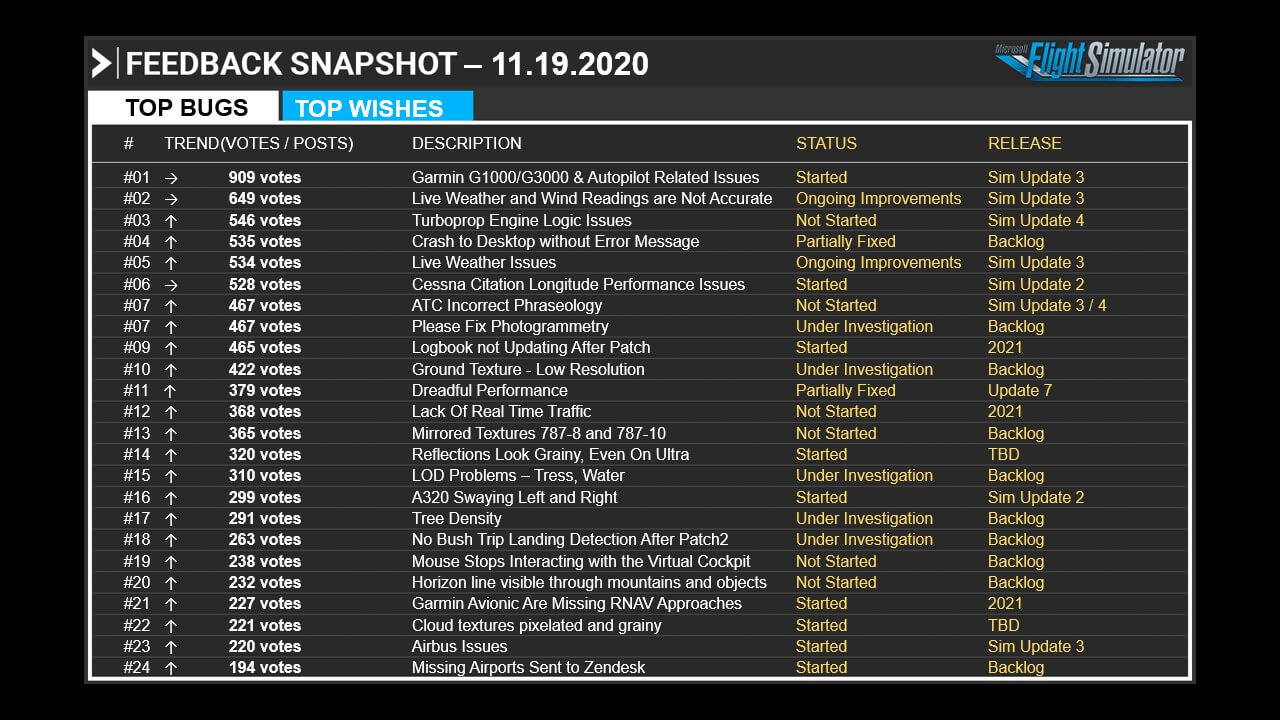 For example, in the first Sim Updates, they will affect the A320 flight behaviour, the Live Weather, the ATC or the Garmin G1000/G3000 and autopilot issues.
