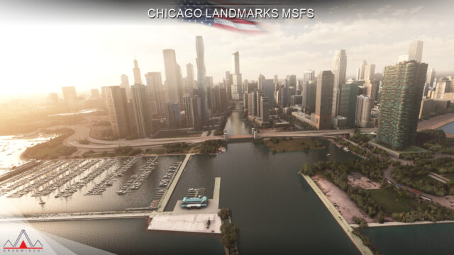 17 custom heliports make part of the content in Chicago Landmarks MSFS, with compatibility and interaction with the default photogrammetry scenery.