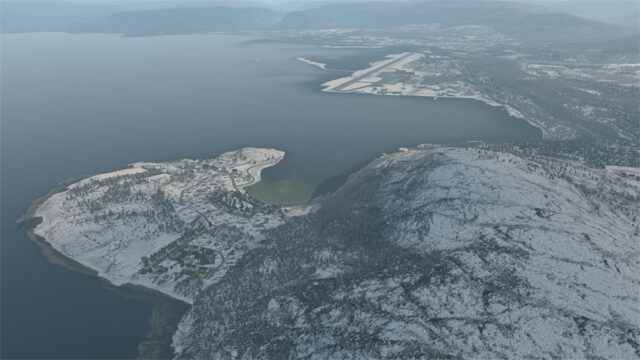 Alta ENAT airport is at the far Northern tip of Norway, qnd the sea is just beside the runway with marvellous surroundings reproduced here with seasonal effects and 3D snow.