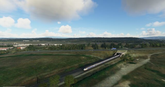 The new MSFS scenery includes the accurate slopes and custom signage, and even the nearby high speed train TGV traffic. By LMT Simulation, for sale at simMarket.