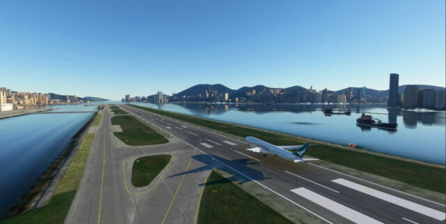 Typical exercise for simmers : visual approach and landing at Kai Tak International in Hong Kong !
