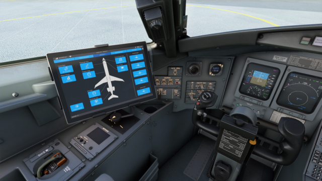 The first version of the CRJ in FSX and early Prepar3d versions already had an operating tool in the cockpit. Here it is now an iPad that is used to operate all functions outside the actual cockpit, i.e. doors open, aircraft status, thrust lever calibration and so on. There are also checklists here and the ability to set the load and transmit V-Speeds and Reference Speeds to the aircraft. All in all, a very user-friendly option – immersion is maintained, great especially for VR.