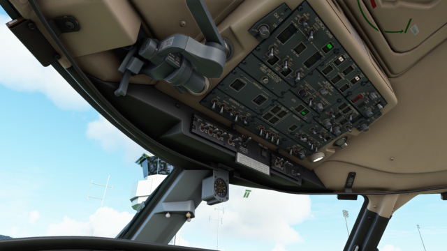 This already starts with the lighting…until you have found all lamp switches and controls, you search for a while (and find something new every now and then). The cockpit illuminates then however very cozy. Whether with daylight or artificial light: everything is cleanly modeled, even when zooming in cleanly labeled. Nothing falls down to blurry pixels, the work has been done very well, even in places you rarely look at, like the fuse strips! Simply beautiful, that’s how you want an airplane on optical MSFS level! If you look closely at the highest zoom level, you can again see small corners on the round cogs, wires, etc. … but in normal operation this is not noticeable.